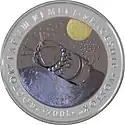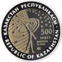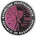 | Реверс: спутник на фоне Земли и звёзд, даты «1957-2007», надписи «Первый искусственный спутник Земли» на каз. ТҰҢҒЫШ ЖАСАНДЫ ЖЕР СЕРІГІ и англ. THE FIRST SPACE SATELLITE OF THE EARTH. Материал: серебро-925 (кольцо, 14,6 г), тантал (центр, 26,8 г). Диаметр: 38,61 мм[7]. Тираж: 4000 шт. | ||