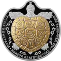 | Аверс: номинал в орнаментальном обрамлении, название государства, год выпуска, масса и проба металлов, логотип НБРК. Реверс: стилизованное изображение черепахи, надписи на каз. ИГІЛІК МОНЕТАСЫ, рус. МОНЕТА БЛАГОПОЛУЧИЯ и англ. THE WELL-BEING COIN. Гурт гладкий. Материал: серебро-925 (кольцо, 19,3 г), окисленный тантал золотистого цвета (центр, 20 г). Диаметр: 38,61 мм. Тираж: 1500 шт.[11] |