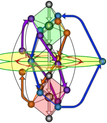 где Q — группа кватернионов, состоящая из 8 единиц Липшица и Z3, циклическая группа 3-го порядка, образованная ω = −½(1+i+j+k). Группа Z3 работает на нормальной подгруппе Q как сопряжение. Сопряжение относительно ω — это автоморфизм Q, который циклически вращает i, j и k.