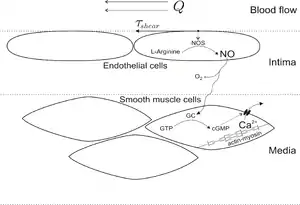 Оксид азота (II) является важнейшим регулятором и медиатором во множестве процессов в нервной, иммунной и сердечно-сосудистой системах. Регулируемые им процессы включают в себя, в частности, расслабление гладких мышц стенок сосудов, что приводит к вазодилатации и увеличению кровотока.[2]