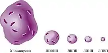 К биологическим нанообъектам относятся молекулы белков, нуклеиновых кислот (ДНК, РНК) и полисахаридов, формирующие внутриклеточный каркас (цитоскелет) и внеклеточный матрикс, мембранные каналы, рецепторы и переносчики, систему внутриклеточной сигнализации, молекулярные машины для синтеза, упаковки и утилизации белков и нуклеиновых кислот, производства энергии, внутриклеточного транспорта и движения клеток. Размер белковых молекул и надмолекулярных белковых комплексов колеблется от 1 до 1000 нм. Диаметр спирали ДНК составляет 2 нм, а её длина может достигать нескольких сантиметров. Белковые комплексы, формирующие нити цитоскелета, имеют толщину 7-25 нм при длине до нескольких микрон. Белковые комплексы, образующие поры, достигают 120 нм в диаметре. Внеклеточные структуры также могут иметь наноразмерные характеристики. Так, экзосомы, везикулы, переносящие материал между клетками, имеют диаметр 65-100 нм, а частицы липопротеинов плазмы крови, транспортирующие липиды в организме, — 8-50 нм (см. рис.). Единственной наноразмерной формой существования живой материи являются вирусы. Их размеры находятся в диапазоне 25-300 нм.