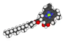 В эту группу входят биологические пигменты, в составе которых присутствует порфириновый комплекс. Гем, один из видов порфиринов, входит в качестве простетической группы в состав таких соединений, как гемоглобин, билирубин, цитохром c, цитохром P450 и другие. К этой группе относятся также растительные пигменты — хлорофилл, феофитин и т. п. Как правило, пигменты этого класса участвуют в фотохимических процессах, а также являются ферментами, задействованными в обмене веществ. Их роль как собственно красителей второстепенна[5].