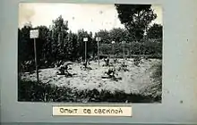 Были организованы зеленые насаждения, демонстрирующие модели и правила организации семипольных и восьмипольных севооборотов, высевали культуры наиболее ценных технических лекарственных и медоносных трав, организовали мичуринский уголок, демонстрировали методику искусственного опыления и прививок у растений.