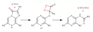 - пероксид целентеразина, выступающий в роли функциональной группы белков экворина и обелина обелий