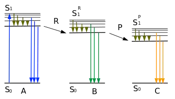 Энергии S1 > S1R > S1P, максимумы излучения λAmax < λBmax < λCmax