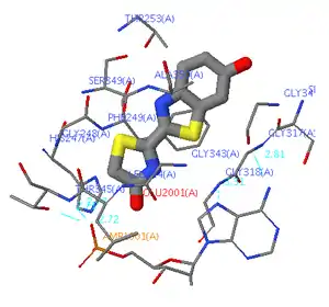- Crystal structure of the thermostable japanese firefly luciferase (PDB id: 2d1r) complexed with oxyluciferin and AMP // PDBsum (недоступная ссылка)