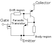 Каскадное включение транзисторов двух типов позволяет сочетать их достоинства в одном приборе: выходные характеристики биполярного (большое допустимое рабочее напряжение и сопротивление открытого канала, пропорциональное току, а не квадрату тока, как у полевых) и входные характеристики полевого (минимальные затраты на управление). Управляющий электрод называется затвором, как у полевого транзистора, два других электрода — эмиттером и коллектором, как у биполярного[2][3].