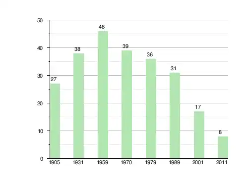 | 1905[3] | 1931[4] | 1959пер.[5] | 1970пер.[5] | 1979пер.[6] | 1989пер.[7] | 2001пер.[8] | 2011пер.[9] |