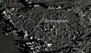 | Бирмингем[3] | Координаты | Диаметр, км |
