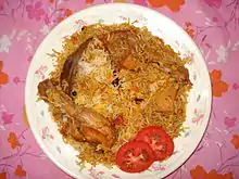 Бирья́ни, или бирияни (урду بریانی; хинди बिरयानी) — второе блюдо из риса (обычно сорта басмати) и специй с добавлением мяса, рыбы, яиц или овощей. Специи и соусы, необходимые для приготовления бирьяни, могут включать в себя: топлёное масло, кумин, гвоздику, кардамон, корицу, лавровый лист, кориандр, шафран, мятные травы, имбирь, лук, чеснок. Однако это далеко не завершённый перечень.