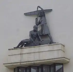 Скульптурная композиция на фасаде поликлиники Гражданской авиации на Песчаной улице