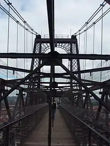 Мост является чисто инженерным сооружением и никак не украшен. Опоры представляют собой две двойные металлические башни высотой 61 метр, оттянутые металлическими тросами, концы которых крепятся на расстоянии 110 м к массивным бетонным блокам. Между башнями, стоящими на разных берегах, натянуты тросы, образующие параболу, на которых на высоте 45 метров висит центральный пролёт моста длиной более 160 метров.