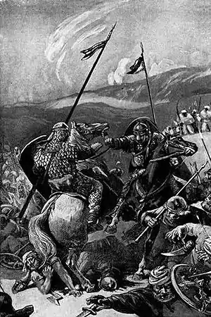 ![]() Боэмунд Тарентский в битве Густав Доре, гравюра 19в | |||