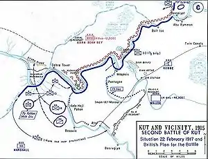 Наступление британцев началось 13 декабря 1916 года. Генерал Мод имел в своём распоряжении 50 000 обученных и оснащенных солдат и офицеров. Турецкими войсками в Ираке командовал Халиль Кут, под началом которого имелось 25 000 солдат и офицеров. Наступление британцы вели по обоим берегам реки Тигр. В ходе продвижения британцы натыкались на укреплённые позиции османских войск. Так например они с 6 января по 19 января 1917 года штрумовали укреплённую позицию турок Хадаири. После ожесточённых боёв и штурма ряда оборонительных позиций османской армии, к концу февраля британцы подошли к Эль-Куту. После чего англичане предприняли штурм города и 24 февраля захватили его. Однако турецкий генерал Карабекир не повторил ошибки английского генерала Таусенда и сумел вывести турецкие войска из города, не дав возможности английским войскам запереть турок в «ловушку».