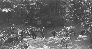 ![]() Морская пехота США пересекает ручей на острове Нью-Джорджия в июле 1943 года | |||