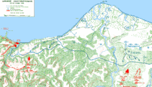- Miller, с. 155; Frank, с. 339—341; Hough, с. 330; Rottman, с. 62; Griffith, с. 187—188. Хякутакэ послал члена своего штаба, полковника Масанобу Цудзи, проконтролировать скорость передвижения 2-й дивизии по тропе и доложить ему, может ли наступление начаться по расписанию, 22 октября. Масанобу Цудзи идентифицируется некоторыми источниками как один из вероятных военных преступников, отличившихся при Батаанском марше смерти.