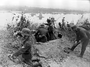 К середине августа А. Гитлер понял, что советское наступление остановить не удастся — по крайней мере до тех пор, пока в рядах союзников не будет достигнуто согласие. Поэтому его решением было выиграть время за счёт строительства многочисленных укреплений для сдерживания Красной Армии. Он требовал, чтобы солдаты вермахта защищали позиции на Днепре любой ценой.