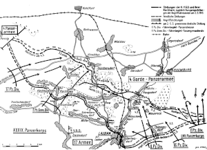 2-5 марта 39-й танковый корпус генерала Карла Декера начал окружать советскую группировку с северо-запада, а с юго-востока её окружал 57-й танковый корпус генерала Кирхнера. На западе держала оборону немецкая 6-я народно-гренадерская дивизия. Большая часть соединений танковой армии Рыбалко оказывалась в котле. Для спасения окружённой советской группировки из личного резерва Рыбалко был отправлен 57-й отдельный гвардейский танковый полк прорыва[5], и почти вся оставшаяся группировка была спасена, в плен попало 176 человек и были захвачены немцами 48 САУ[6].