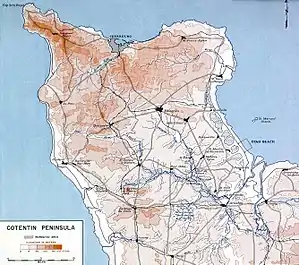 18 июня американская 9-я пехотная дивизия достигла западного побережья полуострова Котантен. В течение 24 часов 4-я, 9-я и 79-я стрелковые дивизии двинулись на север широким фронтом от западного до восточного побережья полуострова. Недостаточно укрепленные позиции немцев на западной стороне полуострова и на восточной стороне, а также у города Монтбур были уничтожены. Американцы обнаружили несколько крупных схронов ракет Фау-1, а также установку для запуска ракет Фау-2 в Британию