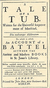 «Битва книг» в целом иллюстрирует одну из главных тем свифтовской «Сказки бочки»: безумие гордыни, уверовавшей в превосходство собственных произведений и неполноценность последующих трудов. Сатира «Сказки бочки» направлена, в частности, против людей, полагающих, что чтение книг делает их равными создателям этих произведений. Другая тема, поднятая Свифтом в «Сказке…» — инверсия переносного и прямого смысла, доходящая до безумия.