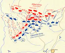 Сербские и турецкие источники дают противоречивые данные о ходе сражения, поэтому реконструкция боя представляет трудности для историков. Битва началась с обстрела турецкими лучниками сербских позиций и атаки сербской тяжёлой конницы, клином врезавшейся в турецкие позиции[16]. Прорвав левый фланг османов, сербы не добились успеха в центре и на правом фланге турок. Тем не менее левое крыло турецкой армии под командованием Якуба понесло тяжёлые потери. Вскоре лёгкая турецкая кавалерия и пехота контратаковали закованных в броню сербских всадников и опрокинули их.