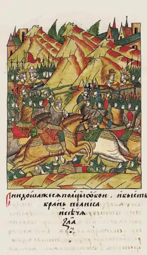 ![]() Миниатюра из Лицевого летописного свода Ивана Грозного | |||