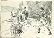 "Крупная картечь и мушкетные пули, вылившиеся на них с близкого расстояния по мере приближения к берегу, создали невероятный хаос. Один разряд из полевого орудия под руководством самого капитана Денниса (капитана гренадёров 49-го полка) убил пятнадцать человек в одной лодке."