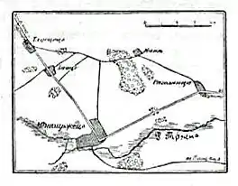 ![]() Театр военных действий (рисунок из статьи «Мендзиржец» «Военная энциклопедия Сытина») | |||
