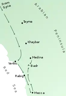 В мекканский период деятельности пророка Мухаммада он и его сподвижники подвергались всяческим нападкам, угрозам, бойкотам, избиению, издевательствам, угрозе смерти. Это побудило пророка Мухаммада сначала переселить мусульман в Эфиопию (сам он остался в Мекке), а потом переселиться в Ясриб (Медину), где решили принять ислам. У пророка появилась поддержка населения Медины и армия соответственно. Но армия курайшитов была более многочисленной, и первое время мусульмане собирали сведения о проходящих около Медины караванах курайшитов, а потом посланник решил напасть на один из них. Такие нападения на караваны (мусульмане нападали только на караваны курайшитов) оказывали давление на верхи Мекки. Также оно могло быть вызвано ещё и тем, что у мусульман осталось много имущества в Мекке, и это было своего рода возвращением отнятого.