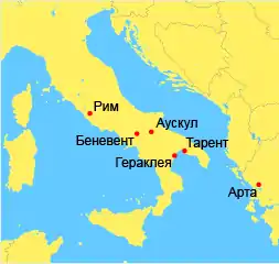 ![]() Места сражений Пирровой войны, Рим и Тарент | |||