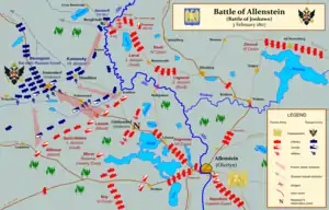 Наполеон рассчитывал, закончив сосредоточение всей своей армии в окрестностях Алленштейна 23 января, атаковать в этот день главными силами (3 корпуса) русскую армию с фронта, между реками Алле и Пассаргой (Пасленка), а двумя корпусами (Сульта и Даву) захватить в тылу левого фланга Беннигсена переправы на Алле и, таким образом, отрезать ему пути отступления на восток. Однако, полная боевая готовность русской армии 22 января заставила императора начать атаку в этот день, чтобы боем удержать противника на месте[1][2].