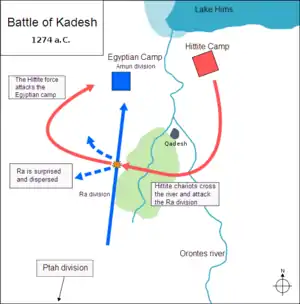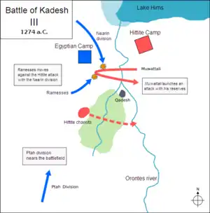 Би́тва при Каде́ше — сражение между войсками Египетского и Хеттского царств, сильнейших держав Ближнего Востока. Войска возглавляли фараон Рамсес II и царь Муваталли II. Столкновение произошло в городе Кадеше на реке Оронт (территория современной Сирии). Хетты, имевшие явное преимущество, не смогли распорядиться им должным образом, что в итоге привело к тактической ничьей и многочисленным потерям с обеих сторон. Хетты одержали стратегическую победу, так как египтяне не сумели занять Кадеш и разбить хеттскую армию, что привело к провалу вторжения. В итоге было заключено перемирие между хеттами и египтянами. Обе стороны приписали победу себе.