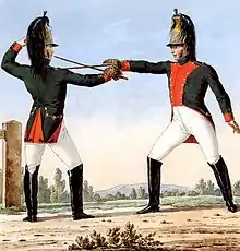 ![]() 13-й эскадрон лёгких драгунов преследует разбитую французскую конницу, 25 марта 1811 года. Иллюстрация Стэнли Л. Вуда, 1897. | |||