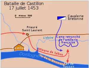 Битва при Кастийоне — крупное сражение, состоявшееся 17 июля 1453 года между английскими и французскими войсками около местечка Кастийон-ла-Батай (фр.) в Гаскони. Битва была последним сражением Столетней войны и завершилась полным разгромом английских войск. Наряду с этим битва была одним из первых сражений в европейской истории, в котором артиллерия сыграла решающую роль.