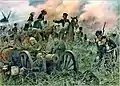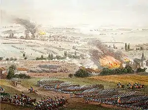 Битва при Линьи. Наступающая французская линейная пехота приветствует императора Наполеона.