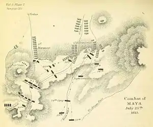 В битве при Майя (25 июля 1813 года) имперский французский корпус во главе с Жан-Батистом Друэ, графом д’Эрлоном, атаковал 2-ю британскую дивизию под командованием Уильяма Стюарта на перевале Майя в западных Пиренеях. Несмотря на внезапность атаки, численно уступающие врагу британские солдаты сражались самоотверженно, причинив французам больший урон, чем понесли сами. К полудню французы стали одерживать верх и начали продвигаться вперед, но запоздалое прибытие бригады из 7-й британской дивизии стабилизировало ситуацию. Британские войска ускользнули под покровом ночи, а французы не преследовали их. Битва при Майя произошла во время Пиренейских войн и была частью битвы при Пиренеях, которая завершилась значительной победой союзников.