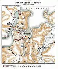 В конце января 1864 года союзная австро-прусская армия (около 8 тысяч солдат) вошла в пределы Голштинии. Главнокомандующий тридцати двух тысячной датской армии генерал-лейтенант Кристиан де Меза решил преградить наступление союзников на Данневеркской позиции[1], простирающейся на 70-80 километров от устья реки Айдер до бухты Шлей. Самым важным пунктом позиции было село Миссунде, где залив Шлей суживался приблизительно до 140 метров и где шла большая дорога из Экернферде в Фленсбург[2].