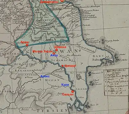 - Шараф-хан Бидлиси, до декабря 1578 года воевавший в сефевидском войске, сообщал, что Мирза Салман наткнулся на Алиль Герая «в местечке Аксу, относящемся к Шемахе»[14].