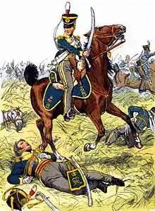 2-й гусарский полк Королевского германского легиона и два эскадрона 13-го лёгкого драгунского полка атаковали отряд Неве, но французы построились в каре посреди леса, и ряды нападающие пришли в беспорядок из-за пробковых деревьев, защищавших французских солдат. Французы пять раз отбивали атаки дезорганизованной британской кавалерии метким огнём. Солдатам Неве удалось уйти в сторону Мериды, несмотря на то, что в конце битвы на поле боя прибыла британская артиллерия[2].