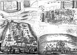 ![]() Гравюра, битва при Райнфельдене с высоты птичьего полёта. Маттеус Мериан 1670 | |||