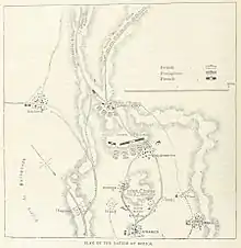 Он послал силы Трента на запад, а отряд под командованием Фергюссона и Боуза с шестью пушками на восток, в то время как сам отвлекал французов в центре. С 9 утра Уэлсли дважды пытался выполнить окружающий манёвр, но каждый раз французы отступали в боевом строю. Окончательная позиция французов была к юго-востоку от деревни на вершине крутого холма.