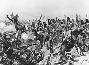 Активная фаза сражения началась мощной атакой пехоты и кавалерии под командованием генерала Эдварда Пакенема на шедшую впереди французских войск дивизию бригадного генерала Томьера и кавалерийскую бригаду Кюрто. Дивизия Томьера была полностью разгромлена, сам Томьер погиб. Затем удар англичан обрушился на шедшую следом за Томьером вторую бригаду дивизии Антуана Луи Попона де Мокюна. Эта бригада также была полностью разбита. Остатки разбитых частей примкнули к Первой бригаде дивизии Мокюна. Прикрыть их попыталась конница Курто, но вскоре она была рассеяна. Мощным натиском английской кавалерии Первая бригада дивизии Мокюна была наголову разбита вслед за Второй. Затем на открытом месте был разбит один из полков 6-й французской дивизии. Решающую роль в этой цепи побед сыграла британская кавалерия генерал-майора Джона Ле Маршана, но при продолжении атаки он погиб.