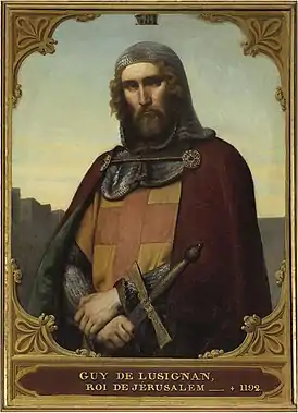 Ещё при жизни Иерусалимского короля Балдуина IV, в связи с тем, что он был смертельно болен проказой, наследником престола стал его семилетний племянник Балдуин V, а регентом — граф Раймунд Триполийский. Граф Триполийский, используя свою власть, заключил с Саладином перемирие на четыре года. Через год юный король неожиданно умер, и наследника престола пришлось выбирать среди двух сестёр Балдуина IV: Сибиллы и Изабеллы.