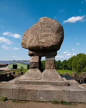 - 17 февраля 1900 года, в ознаменование 400-летия исторического сражения, в Эпенвёрдене открыт был памятный монумент Dusenddüwelswarf, автором которого стал архитектор из Киля Вильгельм Фойгт, выигравший конкурс проектов, объявленный комитетом музея Мельдорфа. Жители последнего намеревались соорудить подобный памятник ещё на 350-летний юбилей, но тогда этим планам помешала революция 1848—1849 года. В центре монумента помещён 30-тонный валун, доставленный из местной каменоломни Балтлер Вирт, который поддерживается четырьмя столбами из тесаного камня и окружён невысокими стенами с зубцами и бойницами, к которым ведёт лестница. На северной стороне валуна выбита надпись: «Страж, берегись, идёт крестьянин!» (Nimm dich in Acht, Garde, der Bauer, der kommt). Археологические раскопки, проводившиеся здесь с 1949 года, позволили некоторым исследователям утверждать, что в 1500 году на месте памятника находилось главное укрепление дитмаршенцев, но позже было установлено, что реальное место битвы находилось в нескольких сотнях метров от него[7]. В конце XX века близ монумента развёрнута была музейная экспозиция, дополненная позже виртуальной реконструкцией.