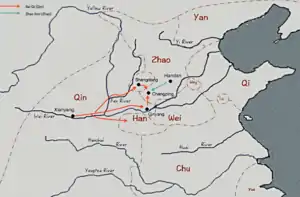 Одержав в конце IV века до н. э. и в начале III века до н. э. целый ряд побед над княжеством Чу и отняв у него значительную часть территории, Цинь направило свои главные силы на север. В 270 г. до н. э. армия Цинь начала наступление на город Яньюй (на западе уезда Уань провинции Хэбэй), принадлежавший княжеству Хань, самому маленькому и слабому из Сражающихся царств, но была разбита прибывшим на помощь ханьцам войском княжества Чжао во главе с полководцем Чжао Шэ.[3].