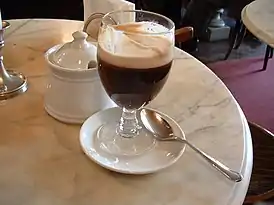 Бичерин готовится из эспрессо, горячего шоколада и сливок, которые наливаются слоями и подаются в небольшом стеклянном стакане.