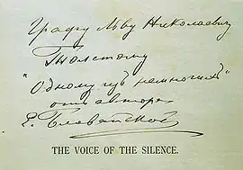 - Blavatsky, Helena The Voice of the Silence, ed. Alice Cleather and Basil Crump. Peking: Chinese Buddhist Research Society. 1927, — p. 113.