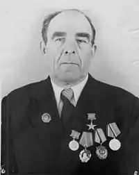 - звание Героя Социалистического Труда (26.4.1957)[2] — за достигнутые высокие темпы и производственные показатели по проходке вертикальных стволов и горизонтальных выработок на строительстве шахты «Капитальная-3» и за активное участие в социалистическом соревновании