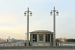 В 1845 году архитектор К. И. Росси предложил установить перед въездами на мост четыре колонны Славы со скульптурами богини Ники (скульптор К. Д. Раух). Однако эта идея Росси не была осуществлена, две колонны Славы были установлены в начале Конногвардейского бульвара со стороны Исаакиевского собора[74].