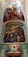 Своды новой пристроенной с запада теплой трапезной части собора были украшены уникальным циклом росписей, связанным с историей Казани. Фрески изображают: обретение и прославление чудотворной Казанской иконы Божией Матери; рукоположение митрополитом Московским Макарием архиепископа Казанского Гурия; обретение митрополитом Ермогеном (будущим патриархом) святых мощей святителей Гурия и Варсонофия, также на стенах собора изображены святые, которым были посвящены казанские храмы, в том числе свв. Киприан и Иустиния, Кизические мученики, благоверные князья Феодор, Давид и Константин.